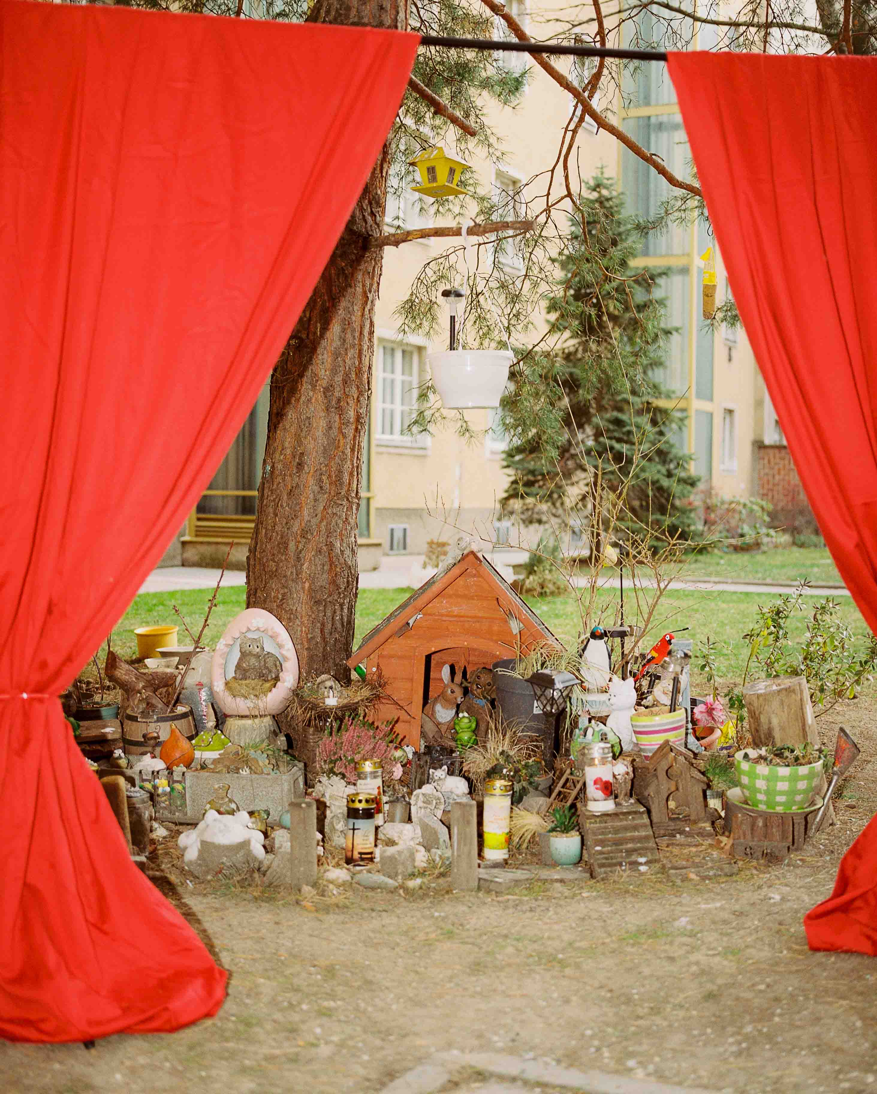 Durch die Zeit, die ich bei Regina und Gerri im Wohnzimmer und beim Rauchen zahlreicher Zigaretten im Hof verbrachte, entdeckte ich nach und nach die Motive der Fotos: den Tierfriedhof, das Vogeltagebuch oder die von Gerri gemalte Badewannendekoration. Im Laufe von Reginas Erzählungen ließ sich bald keine Grenze mehr zwischen Regina, der Hausmeisterin, und Regina in ihrer Privatsphäre ausmachen, so “caring”, aktiv, sozial, aufmerksam, hilfsbereit, präsent und offen ist sie in beiden Kontexten. Das ist ein wichtiger Punkt, denn am Ende habe ich sie als Person, und nicht als Hausmeisterin porträtiert.