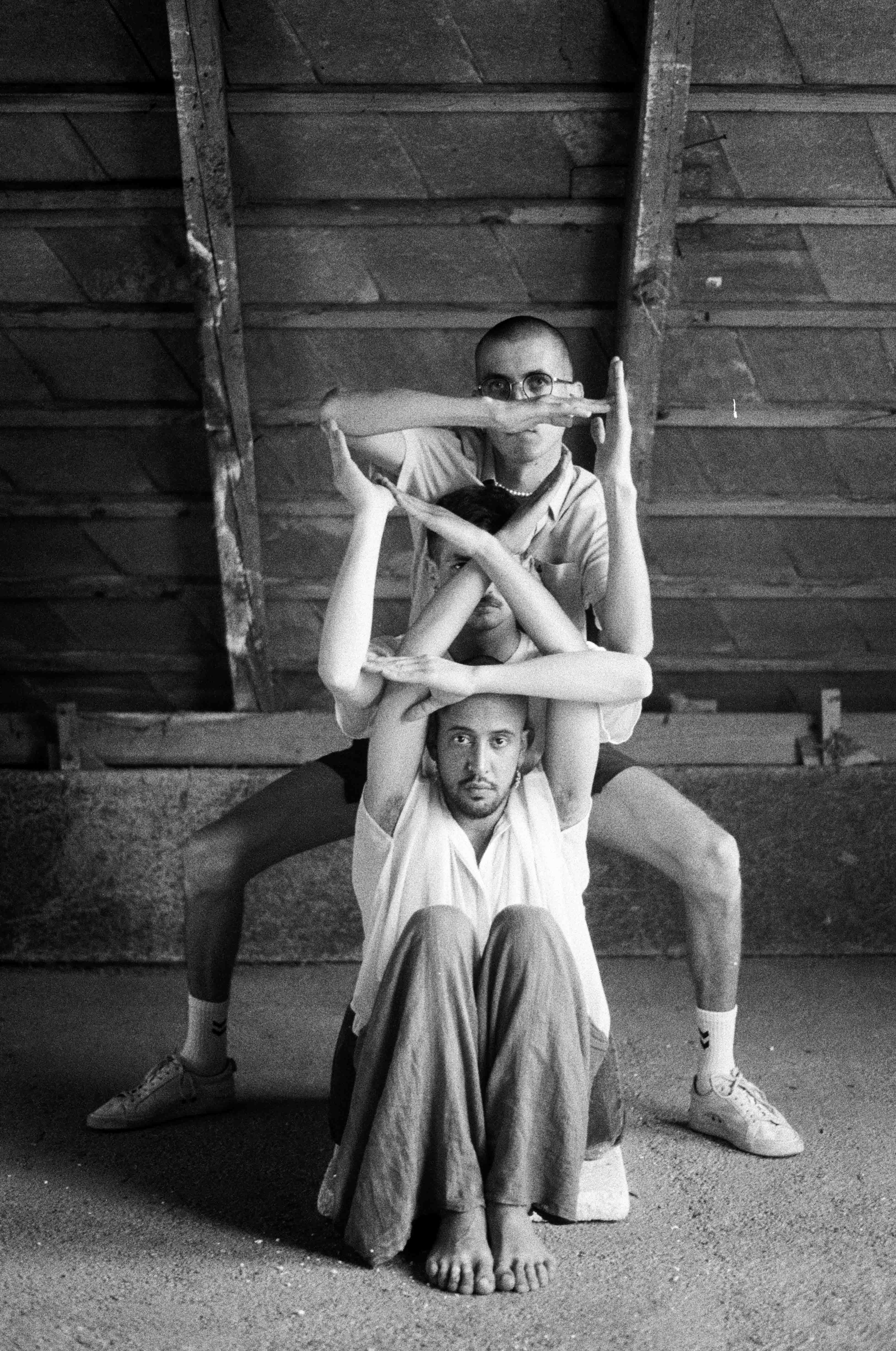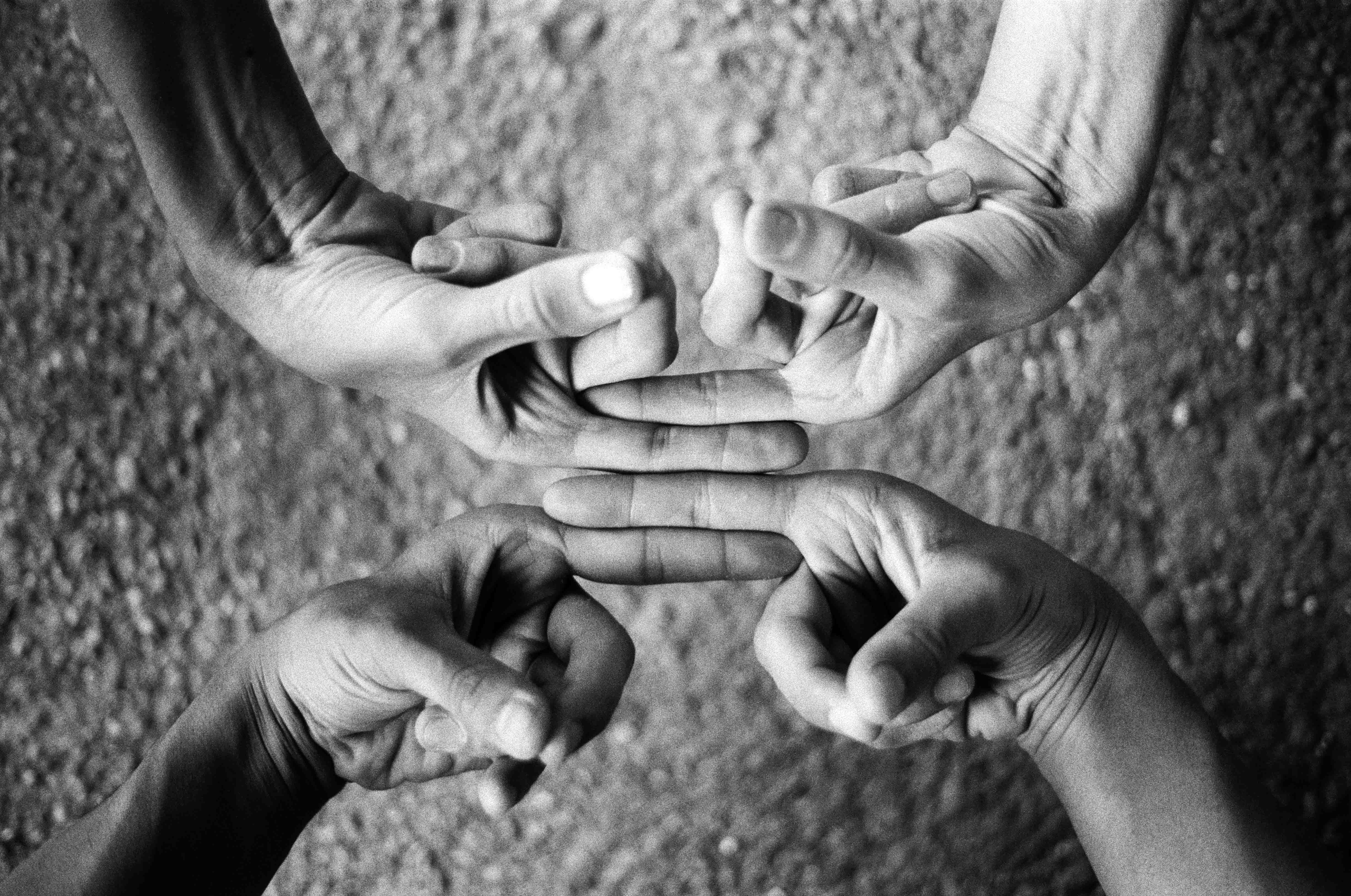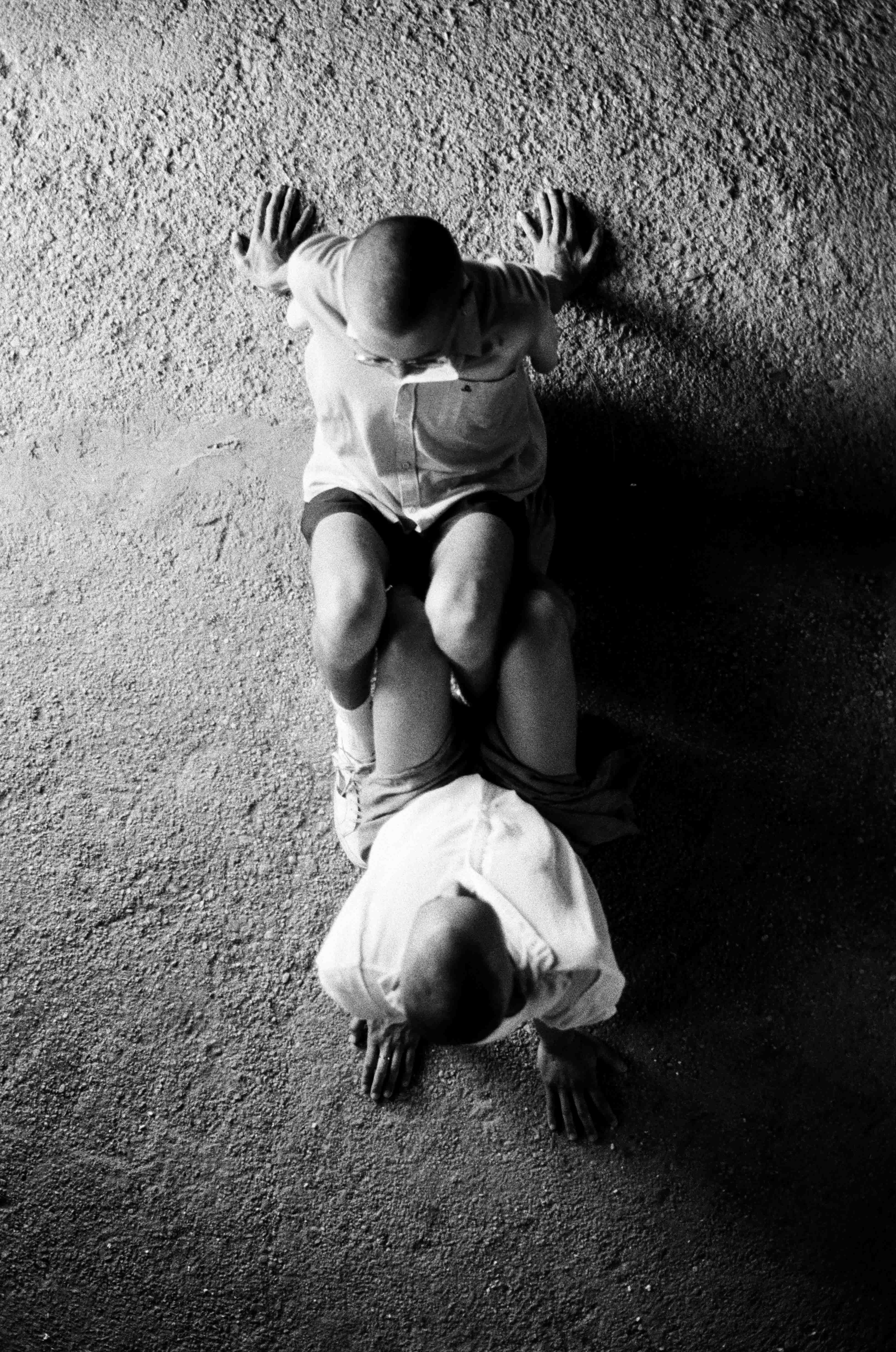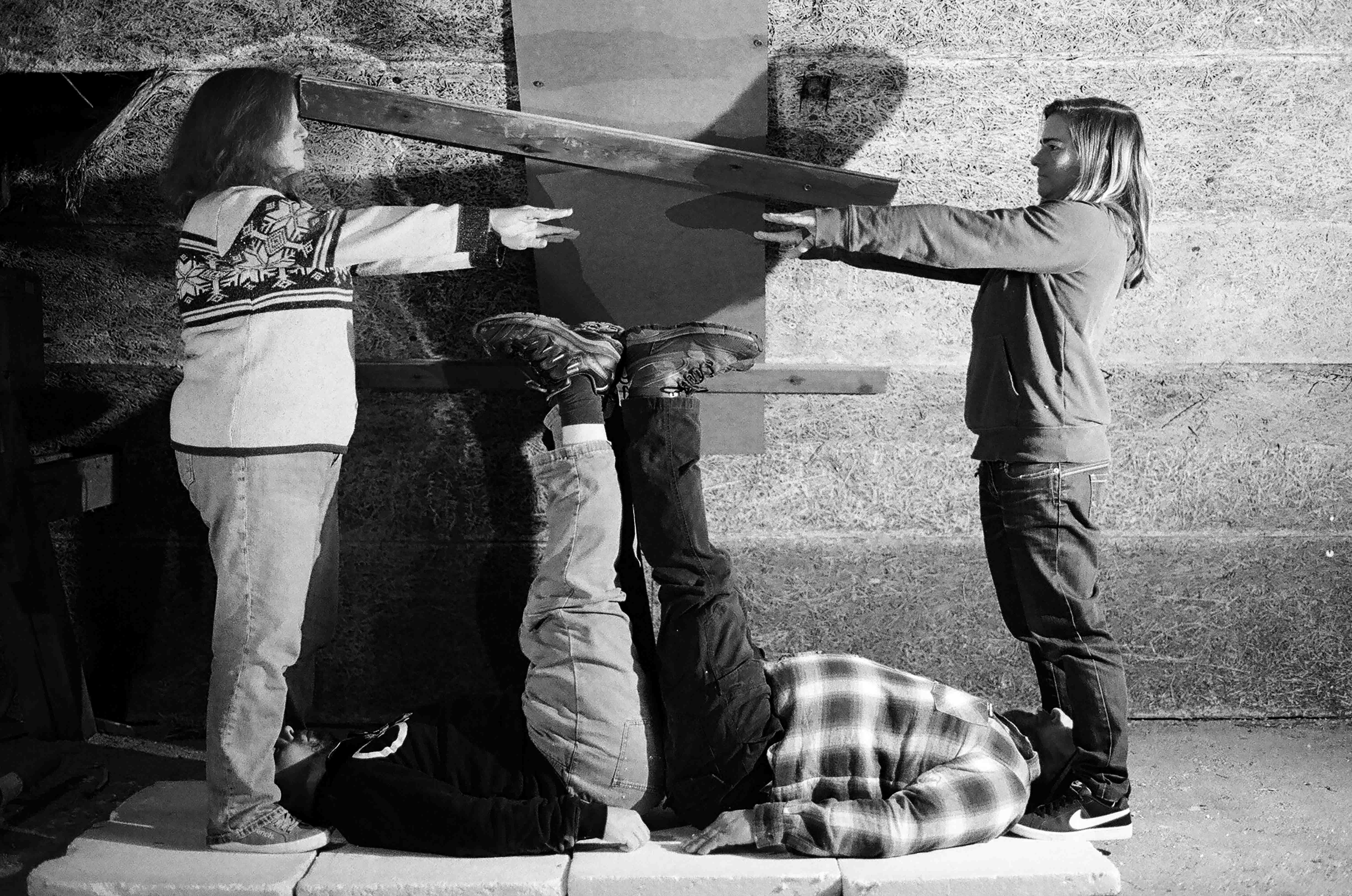 Abgebildet ist meine Familie in meinem Haus am Land während dessen Renovierung. Gemeinsam erschaffen sie Formen mit ihren Körpern. Welche Rolle spielen Beziehungen bei der Entstehung eines Zuhauses?