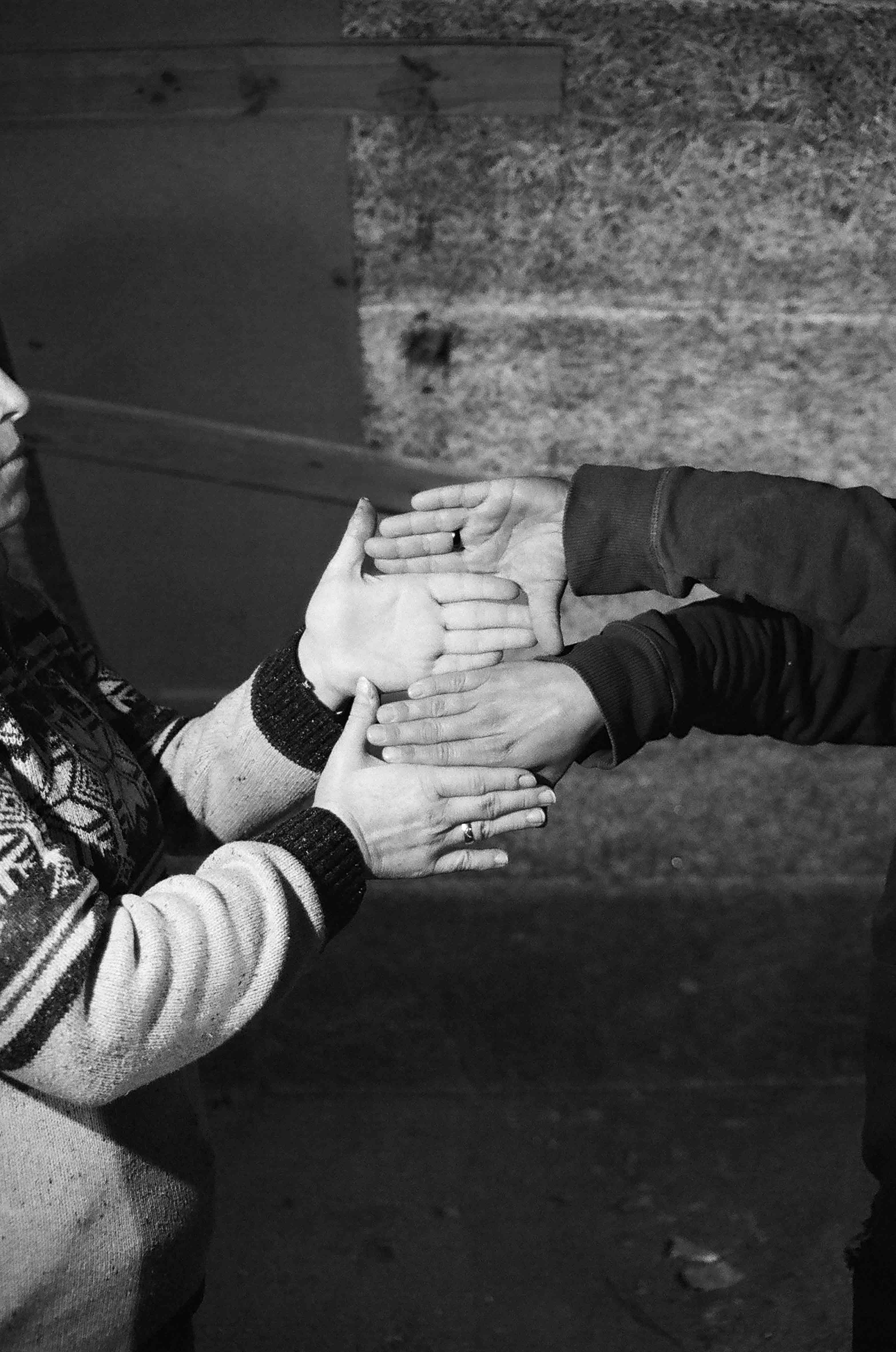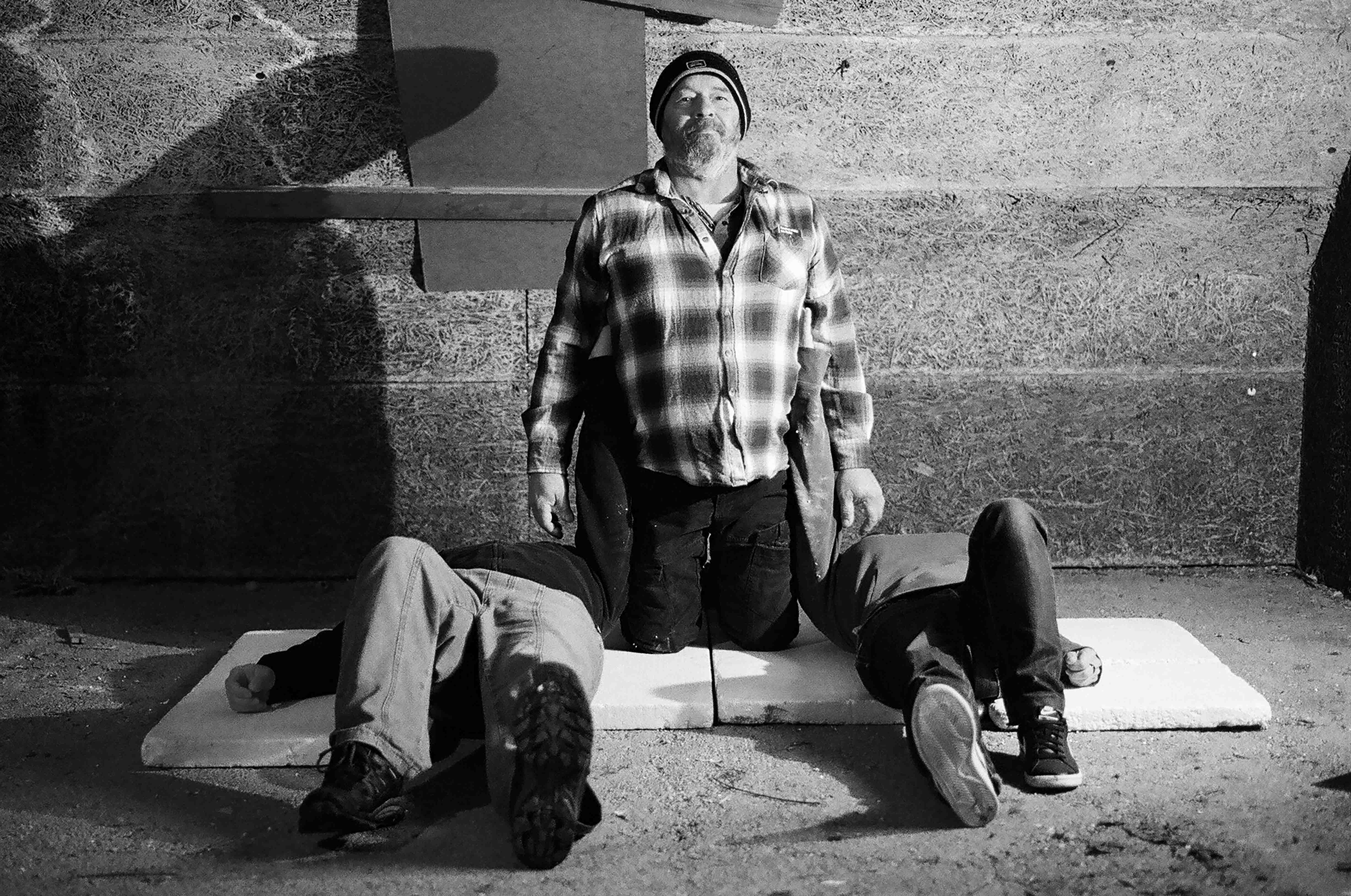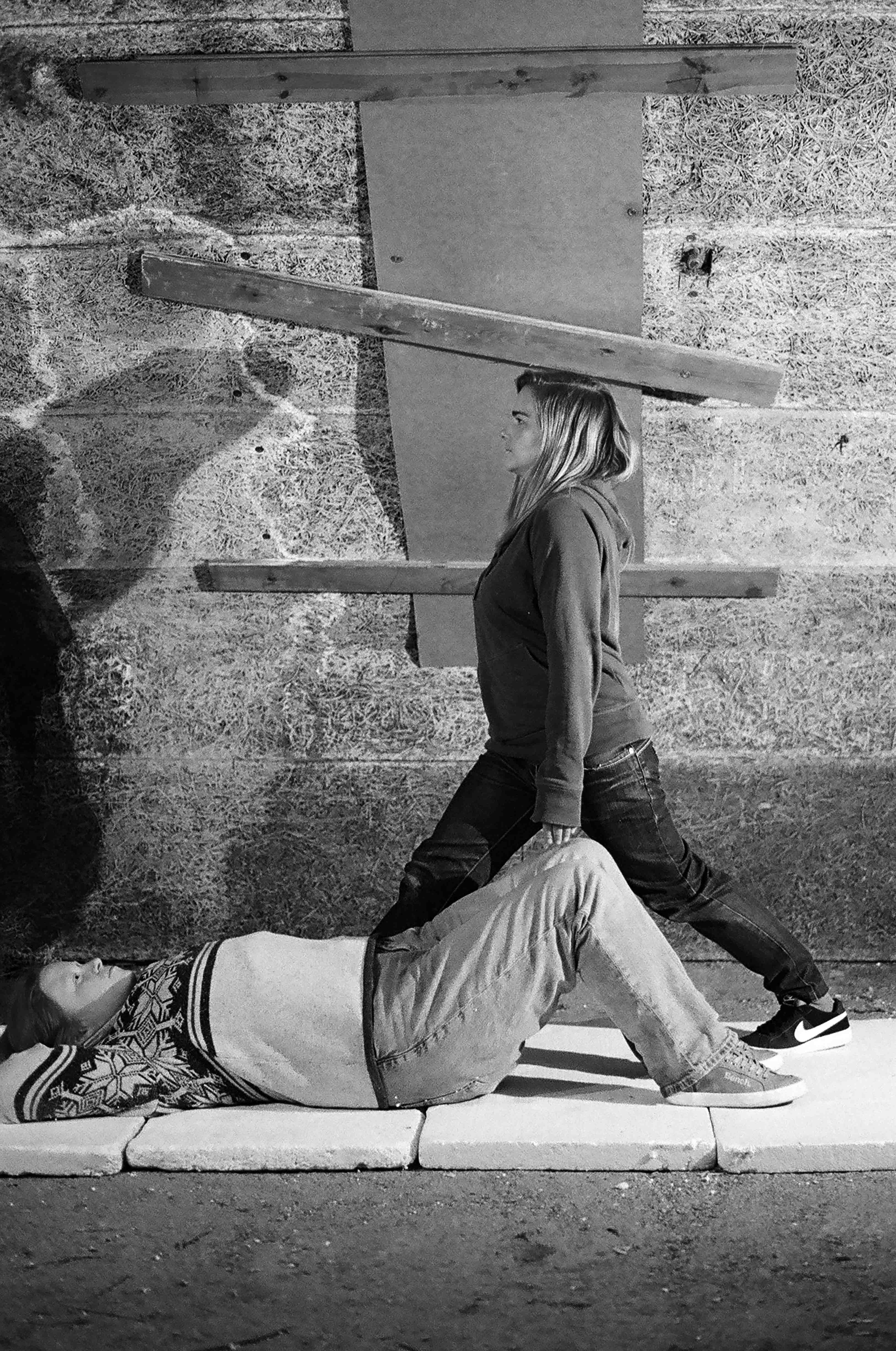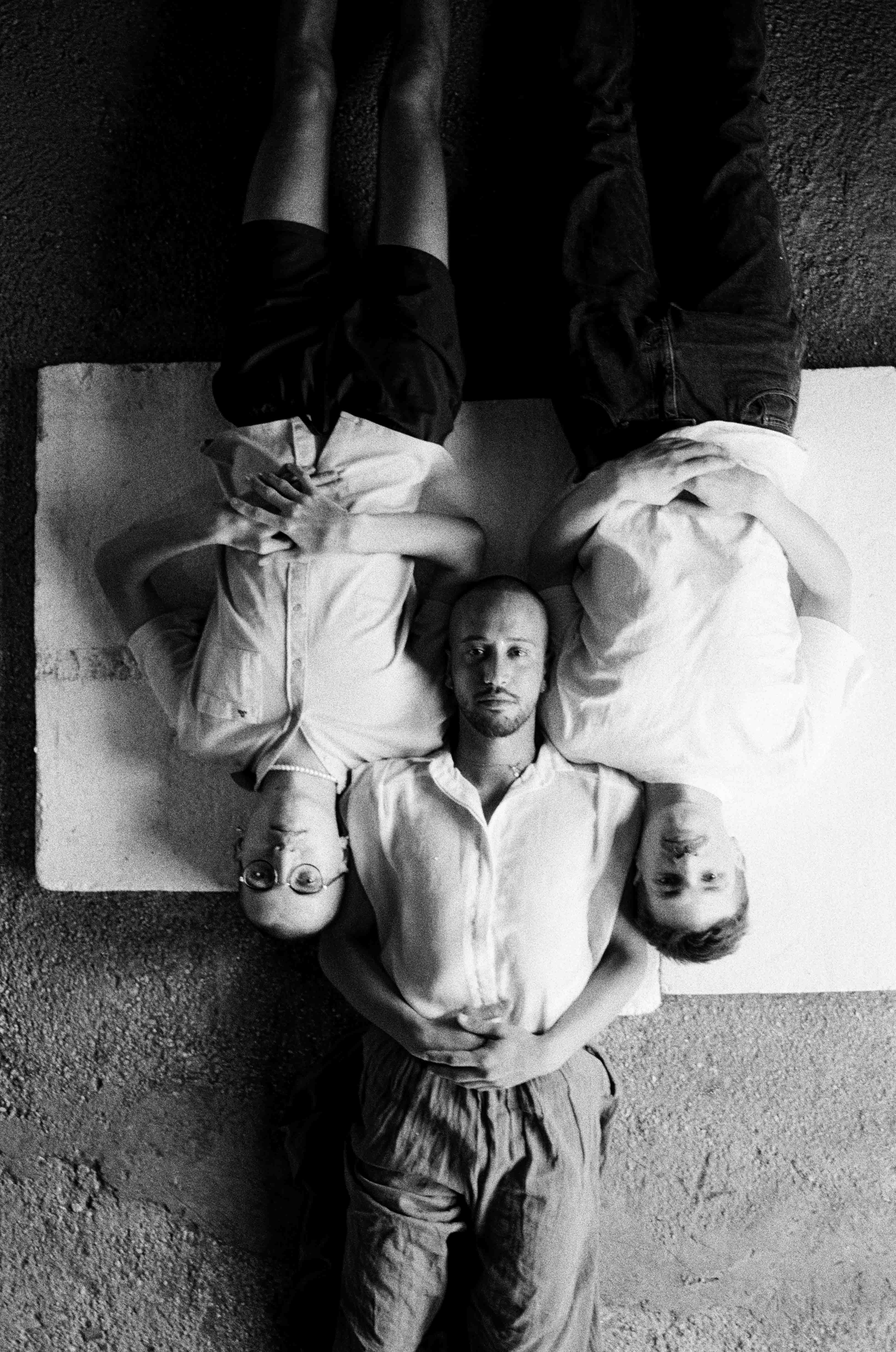Abgebildet ist meine Familie in meinem Haus am Land während dessen Renovierung. Gemeinsam erschaffen sie Formen mit ihren Körpern. Welche Rolle spielen Beziehungen bei der Entstehung eines Zuhauses?
