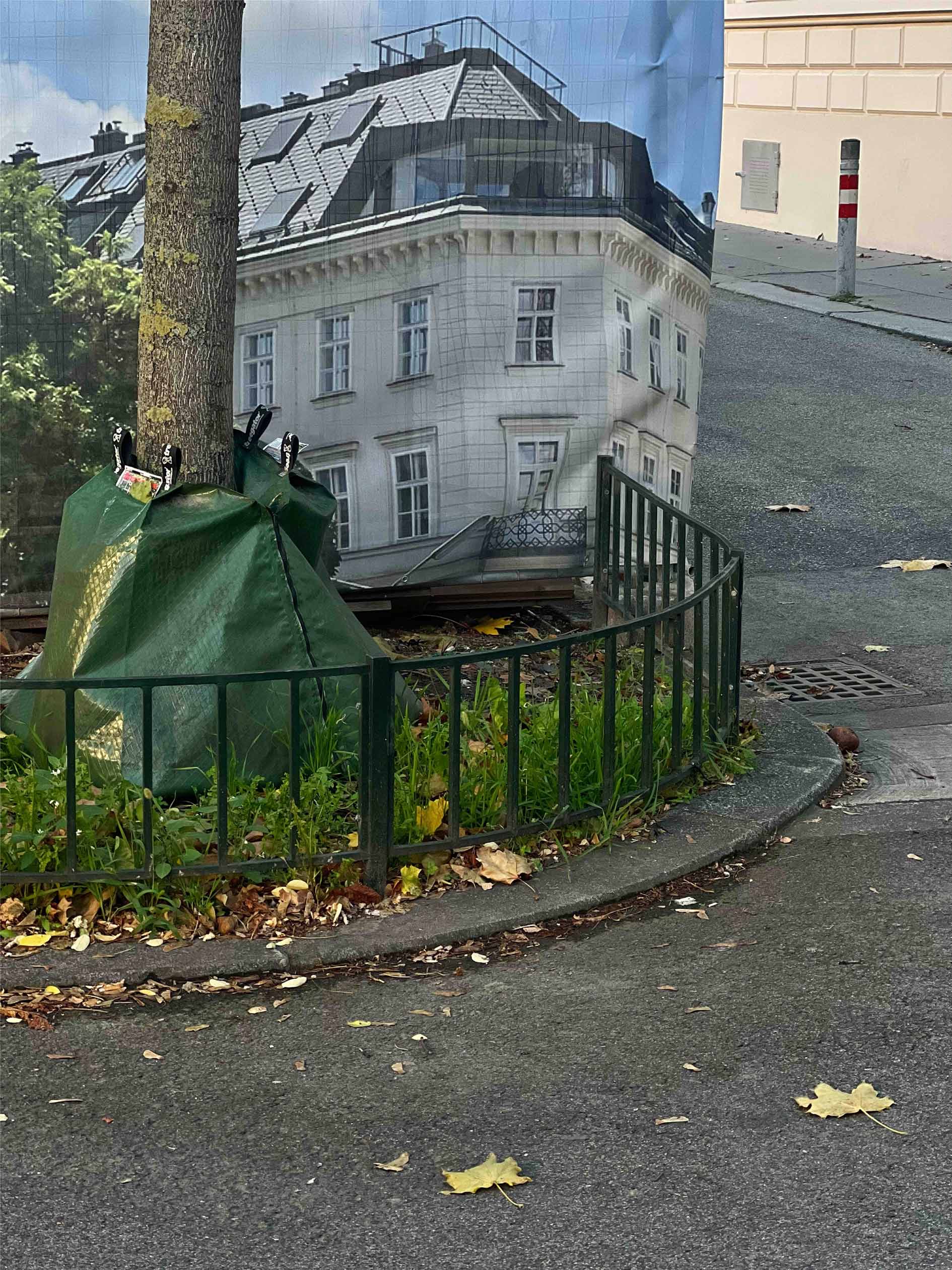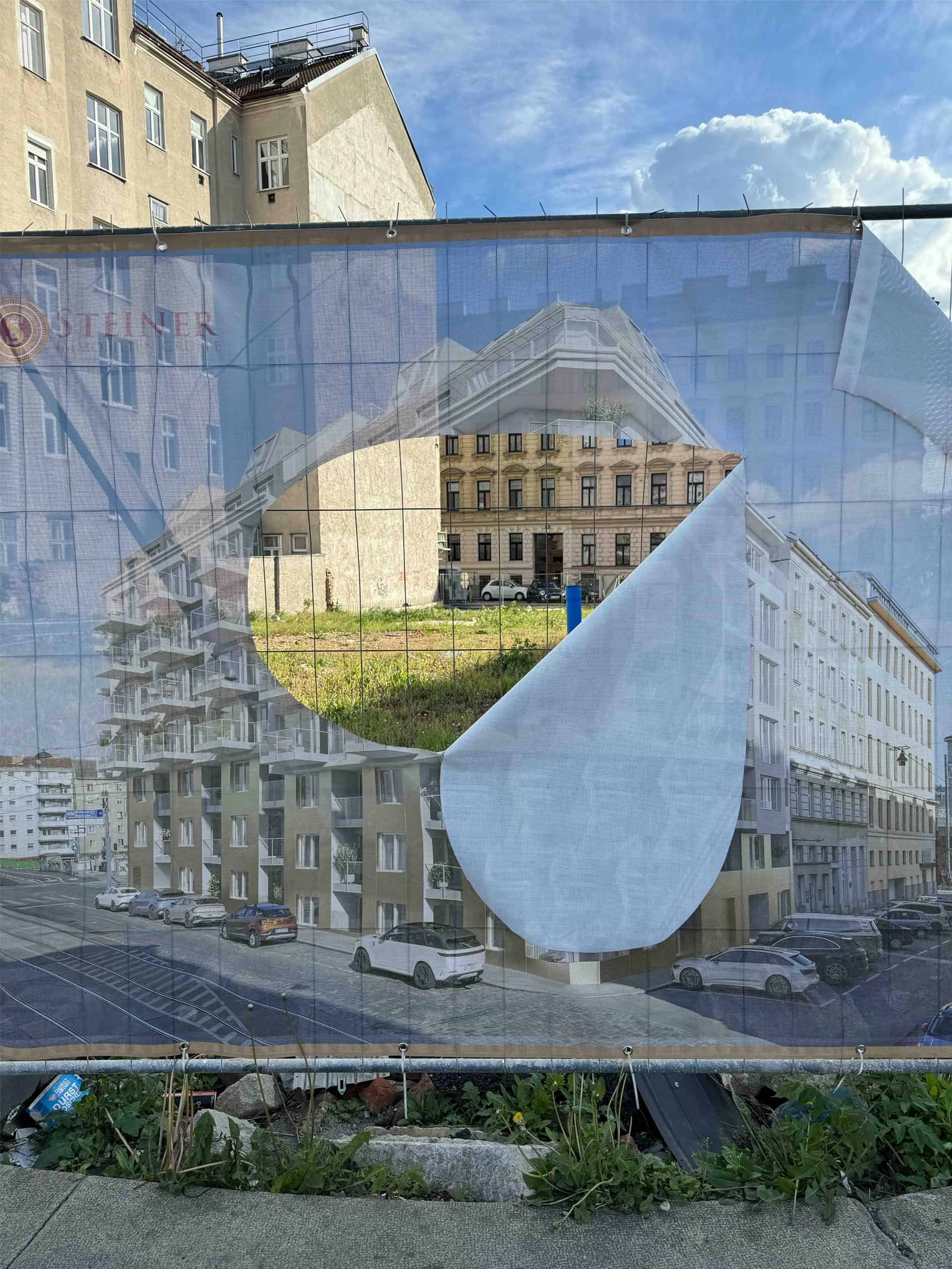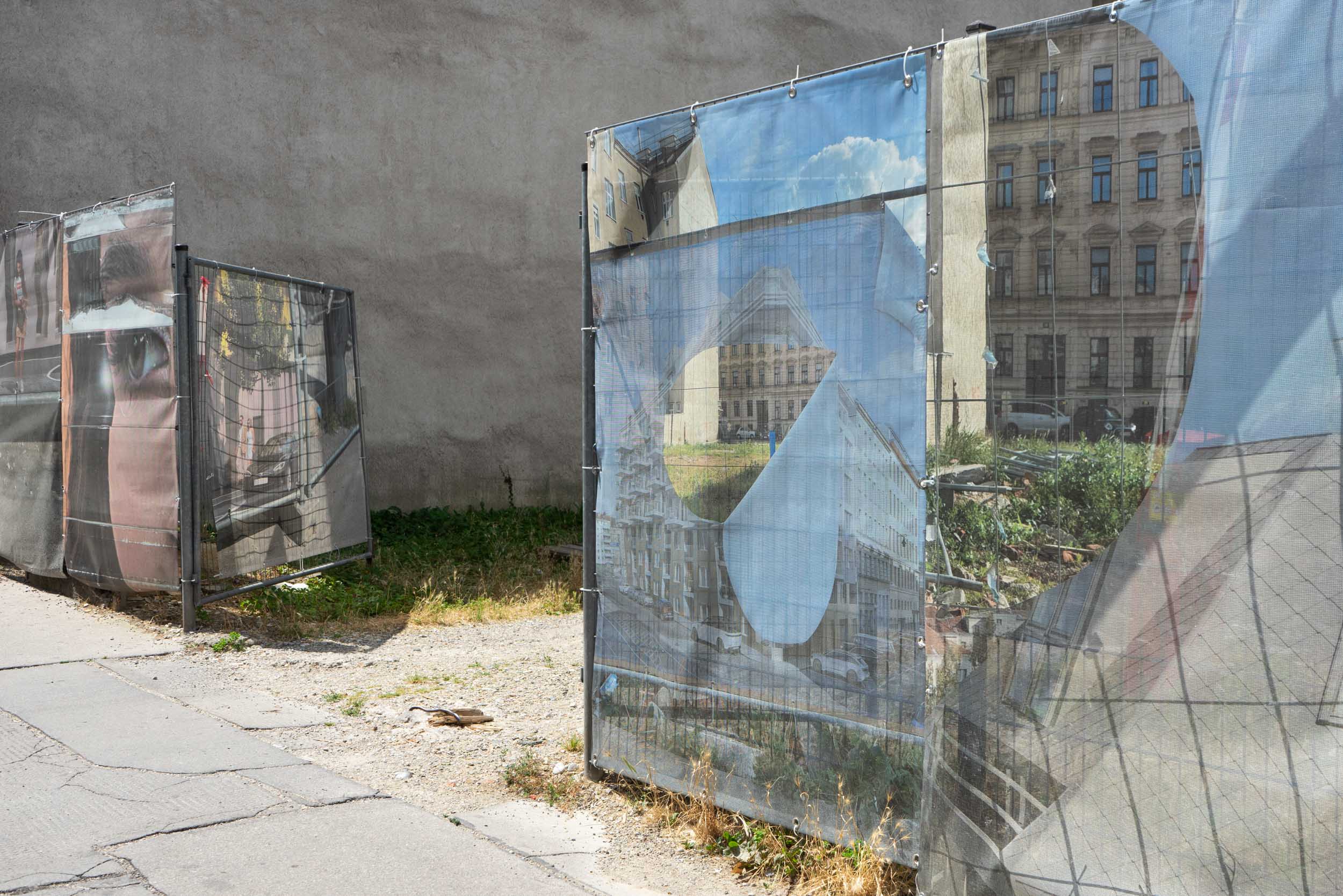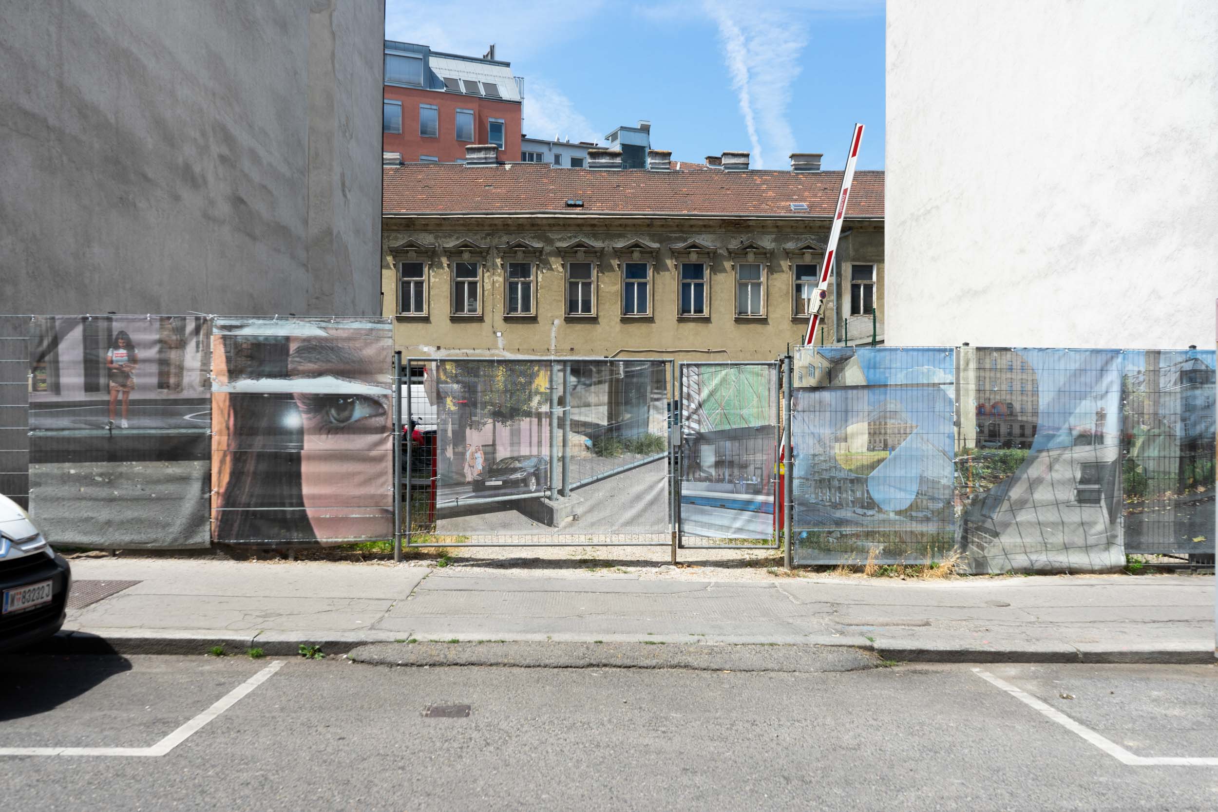 Als Teil der gleichnamigen Stadtausstellung, die vom 26. Juni bis 01. September 2024 an unterschiedlichen Orten im Wiener Stadtgebiet zu sehen war, wurde DREAM HOUSE als Installation an einem Bauuzaun in der Wielandgasse 16 in 1100 Wien präsentiert.