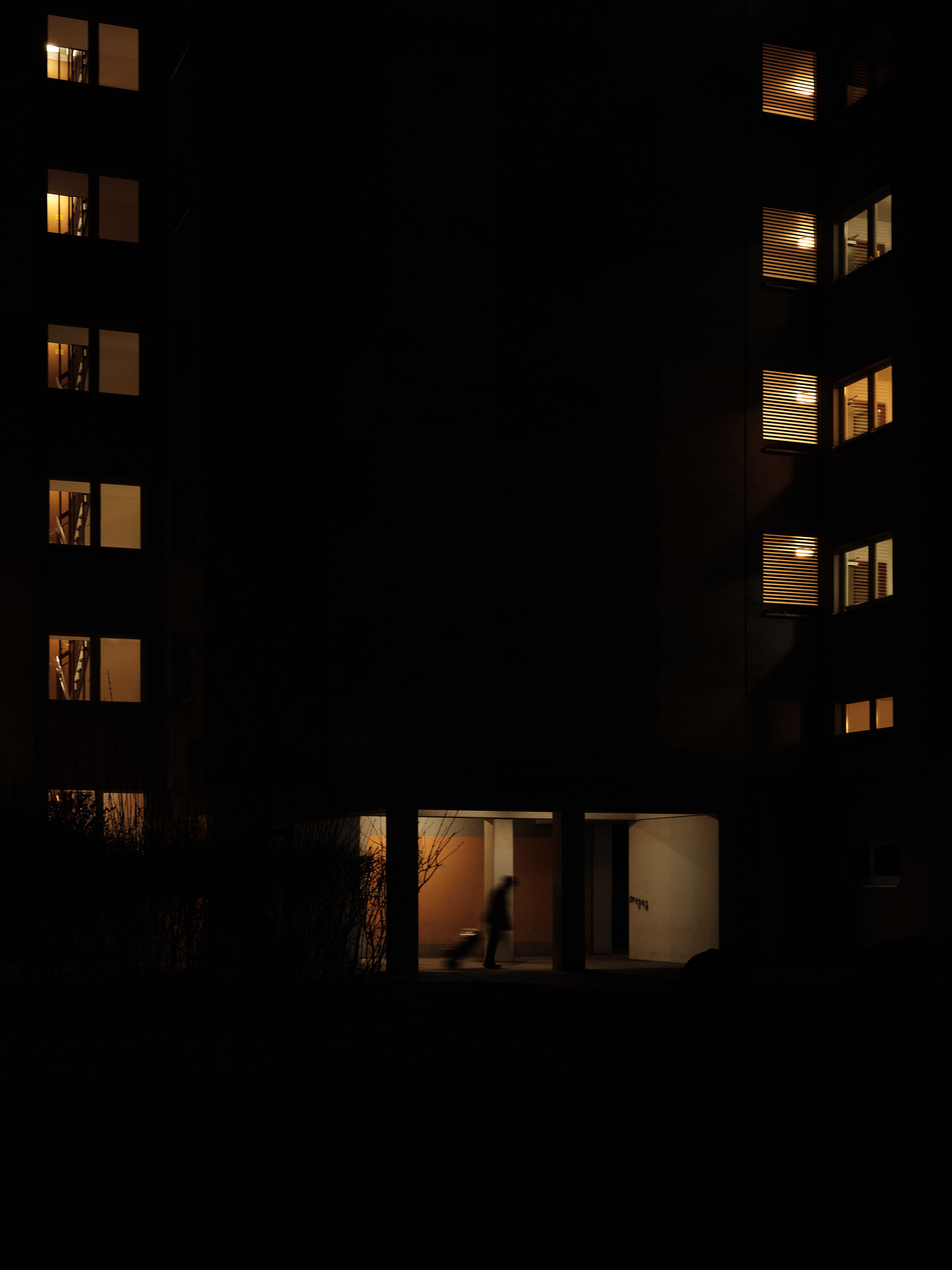 Am Beispiel des Gemeindebaus Franz-Koch-Hof fand neben der fotografischen Auseinandersetzung von Jasmin Biber ebenfalls eine analytische Ortsannäherung durch die Genderwissenschaftlerin Marie Rotter statt.