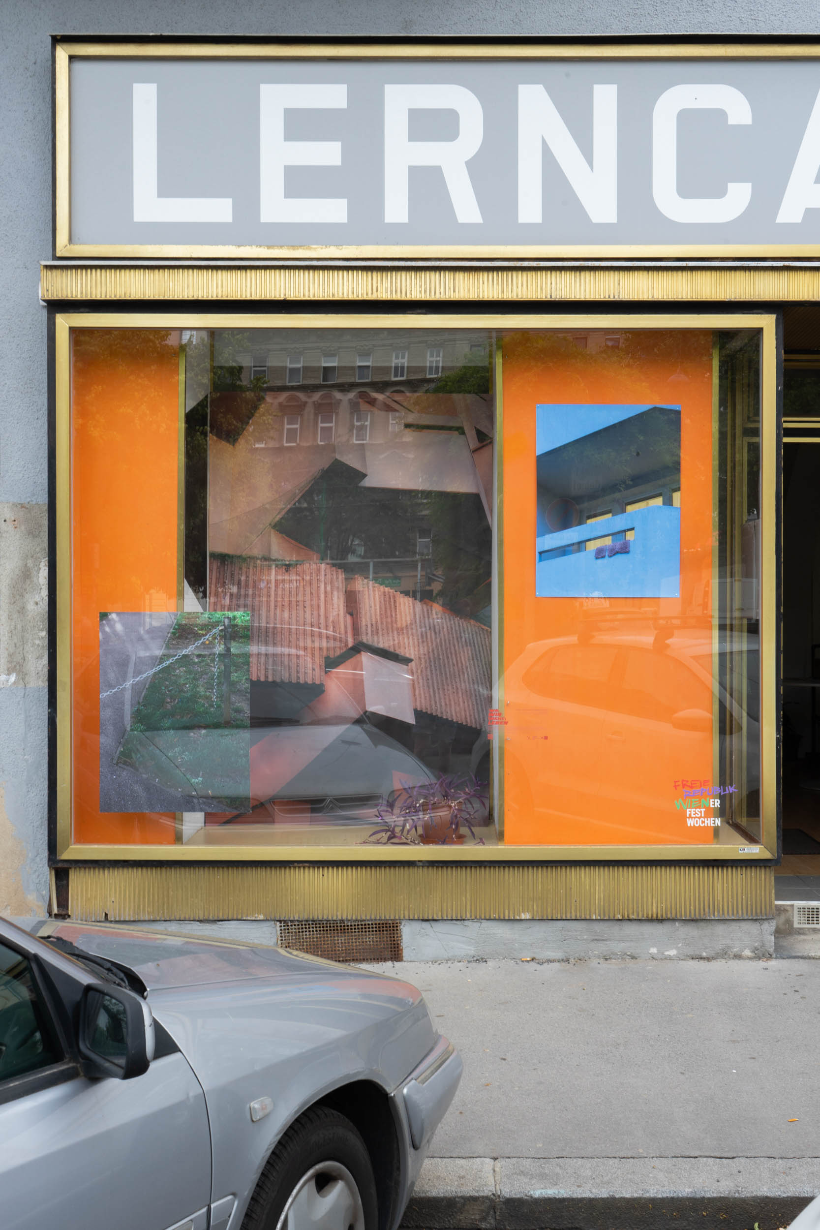 Als Teil der gleichnamigen Stadtausstellung, die vom 26. Juni bis 01. September 2024 an unterschiedlichen Orten im Wiener Stadtgebiet zu sehen war, wurde TRÄUME UND BETON in den Schaufenstern des Lerncafés, Volkertplatz 12 in 1020 Wien präsentiert.