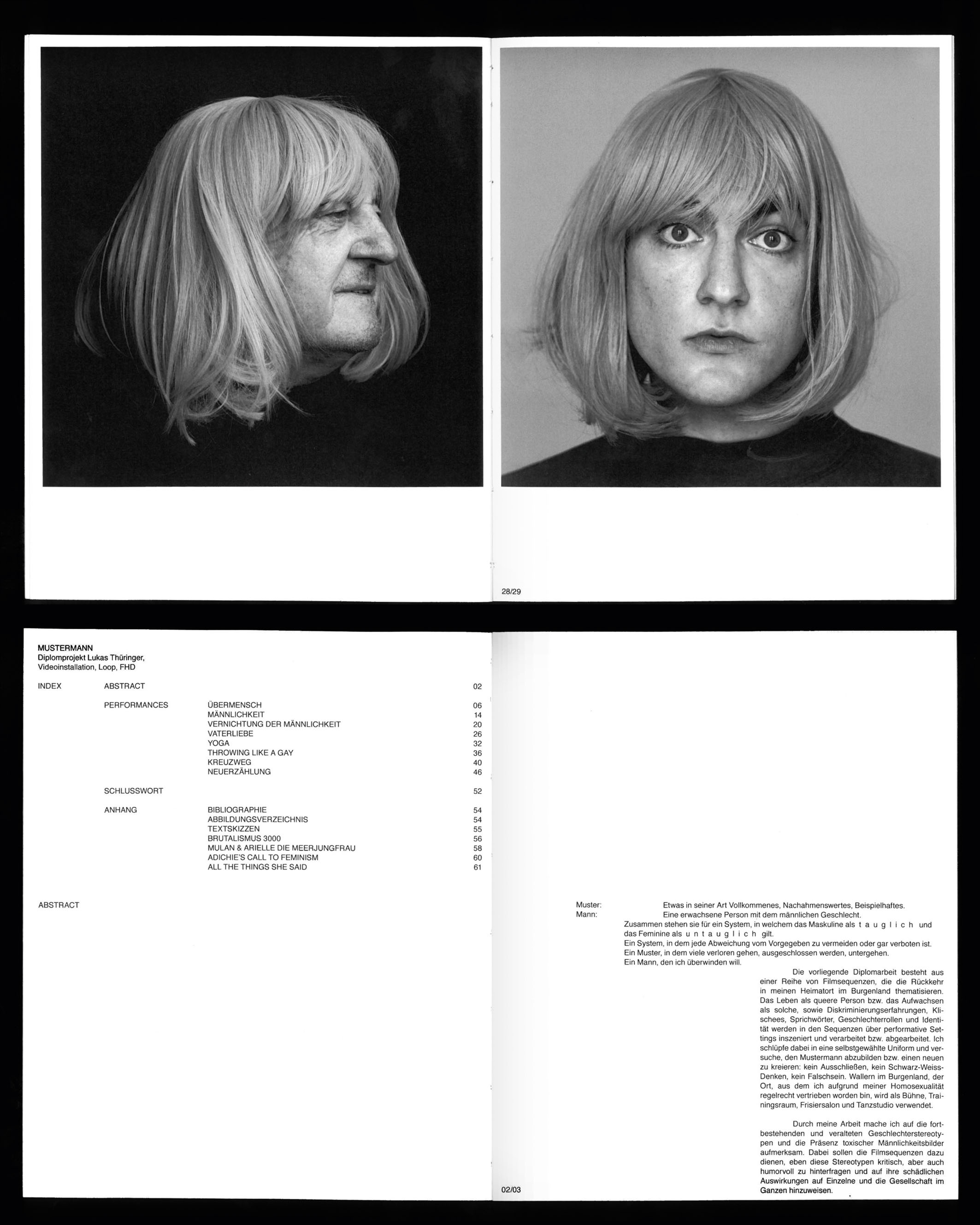 Mustermann: einer Reihe von Filmsequenzen, die die Rückkehr in meinen Heimatort im Burgenland thematisieren. Diskriminierungserfahrungen, Klischees, Sprichwörter sowie Geschlechterrollen werden als Storyboard verwendet.