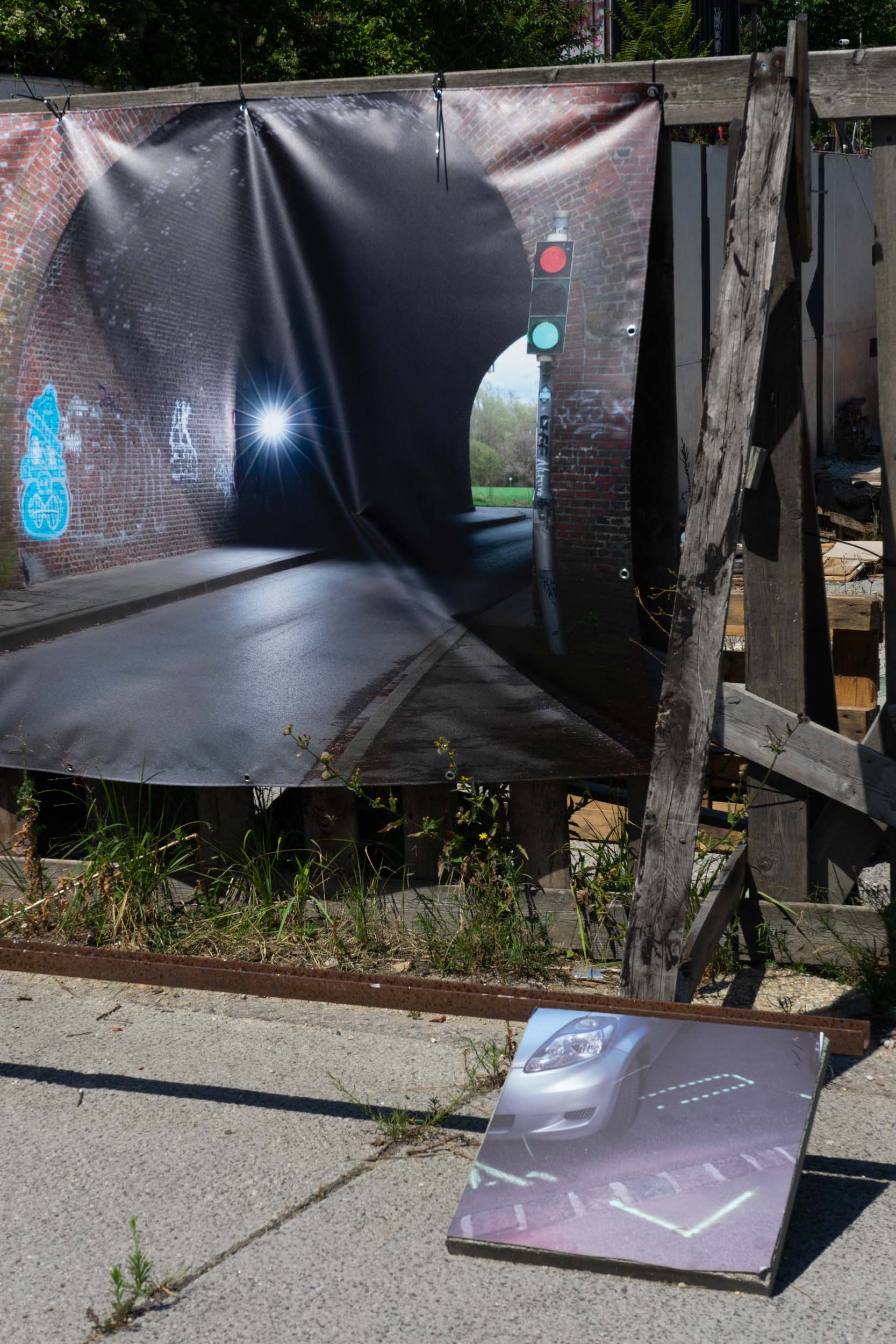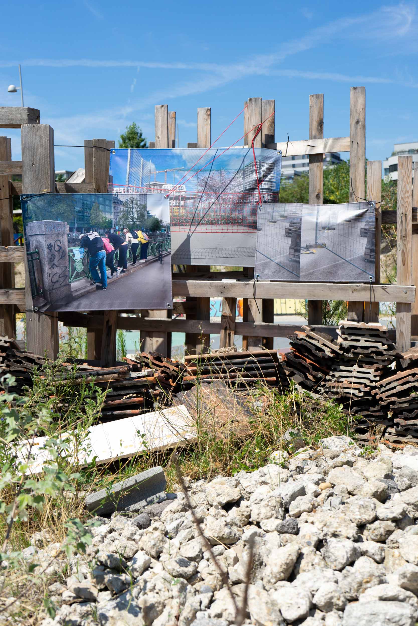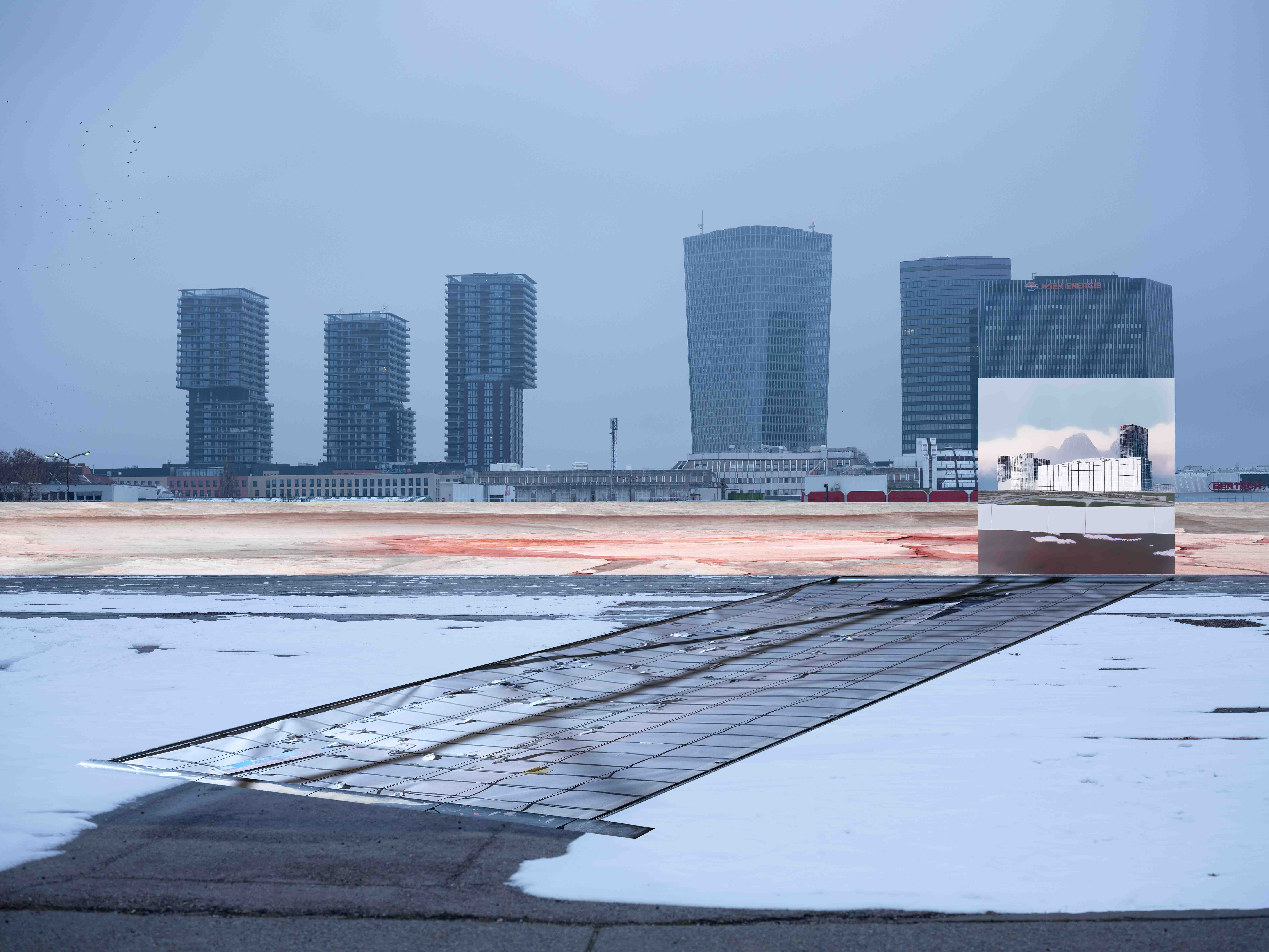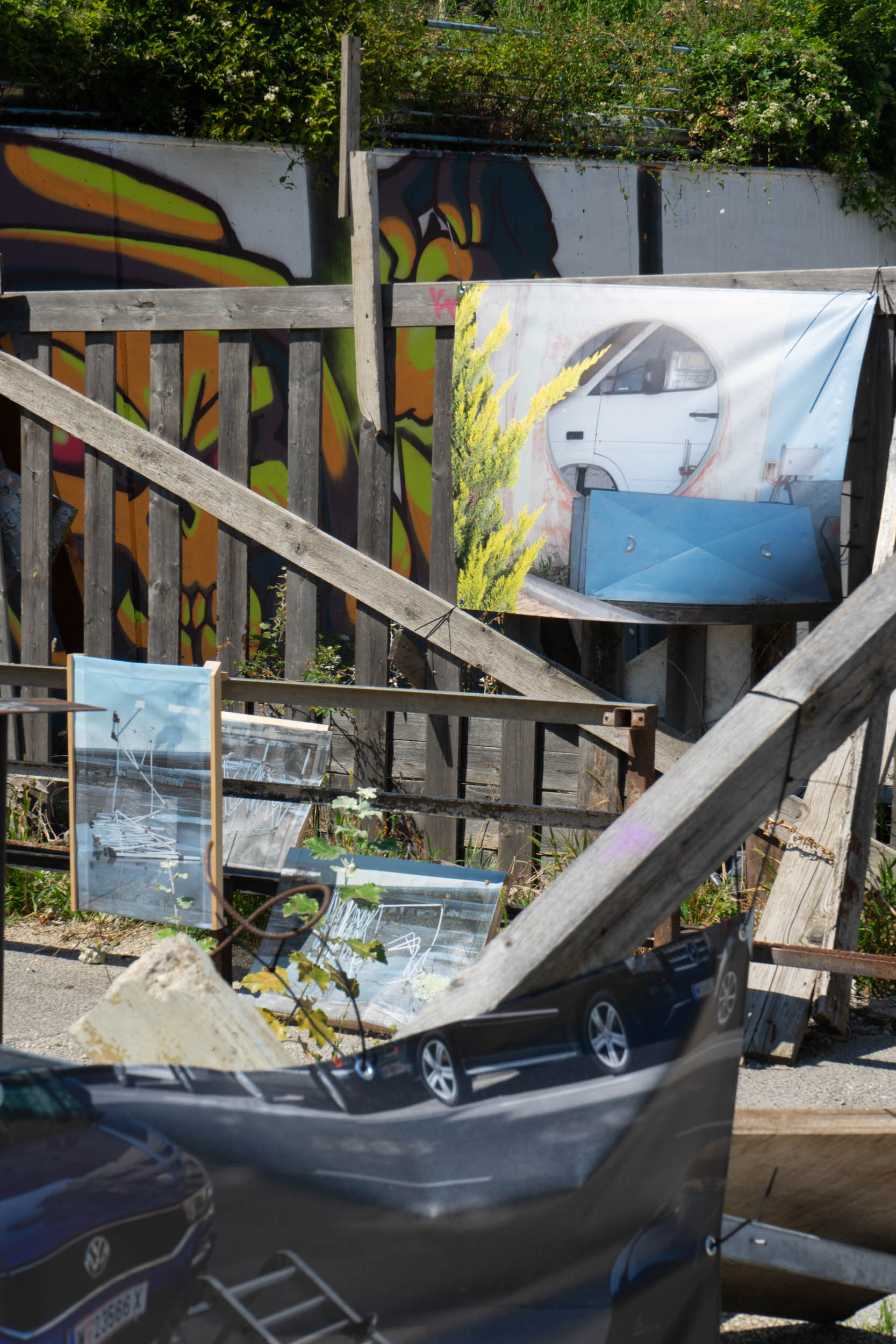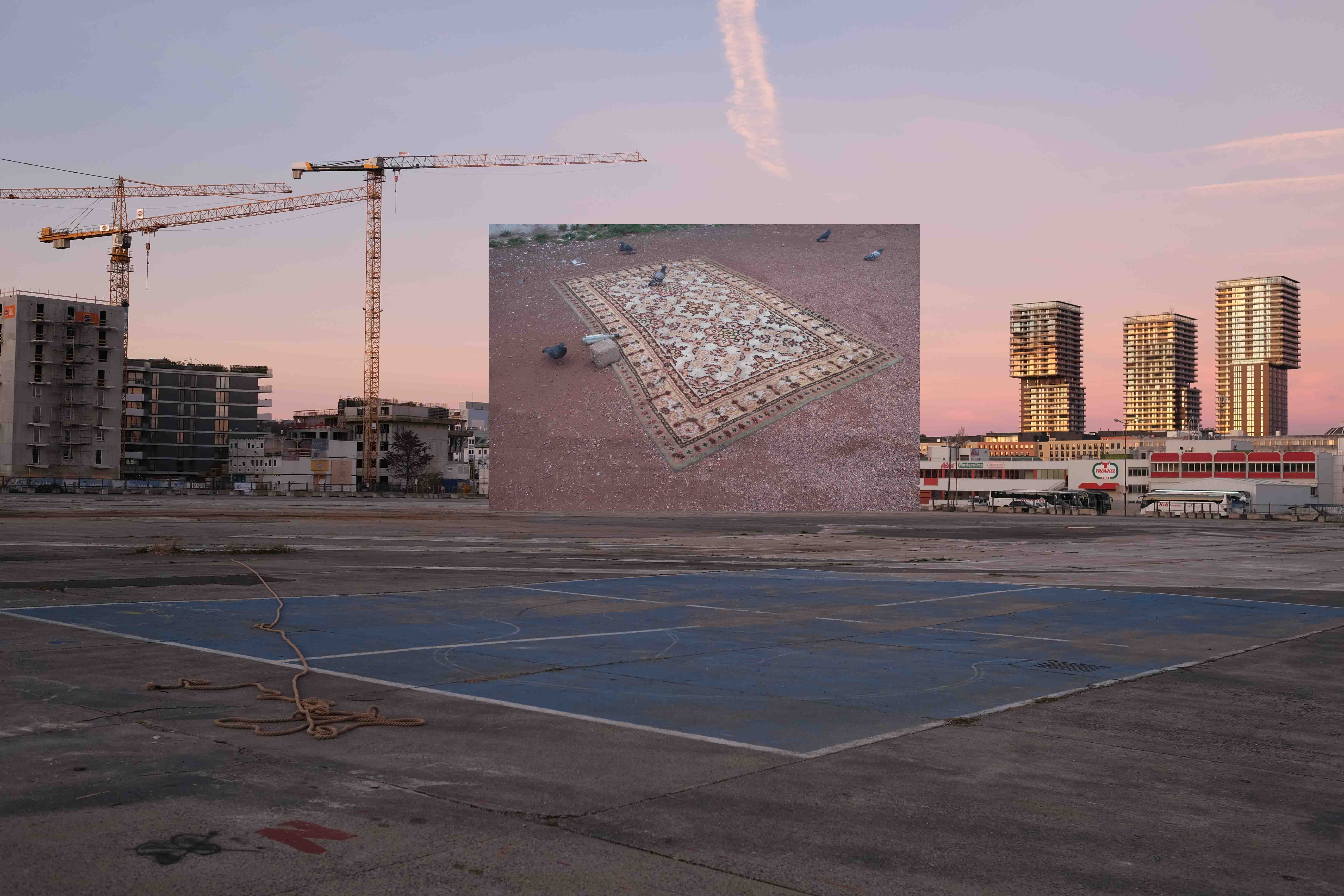 Bilder des Ortes, Teile aus unserem persönlichen Fotoarchiv und Fotografien, die an verschiedenen Orten der Stadt aufgenommen wurden, werden so platziert, dass sie zusammen agieren. Sie nehmen im Bereich St. Marx Gestalt an, ein Prozess, der durch ihr Sujet und die Umgebung, in der sie entstehen, geleitet wird. Durch das ständige Überprüfen derselben Orte schaffen wir einen Raum für unsere eigenen Erprobungen. Unser Prozess ist repetitiv, aber dennoch transformierend: Zyklische Elemente und Formen überlagern sich gegenseitig, um auf unterschiedliche Weise zu agieren. Diese Methode ähnelt der Art und Weise, wie Fragmente (und Erinnerungen) angeeignet, transformiert und geschichtet werden, um eine Stadt zu komponieren. Allerdings reflektieren wir auch über den schematischen Ansatz des heutigen Bauens: Dessen Homogenität und Ausschluss von Divergenz erlauben es nicht mehr, dass Erinnerung im Raum konkretisiert wird.